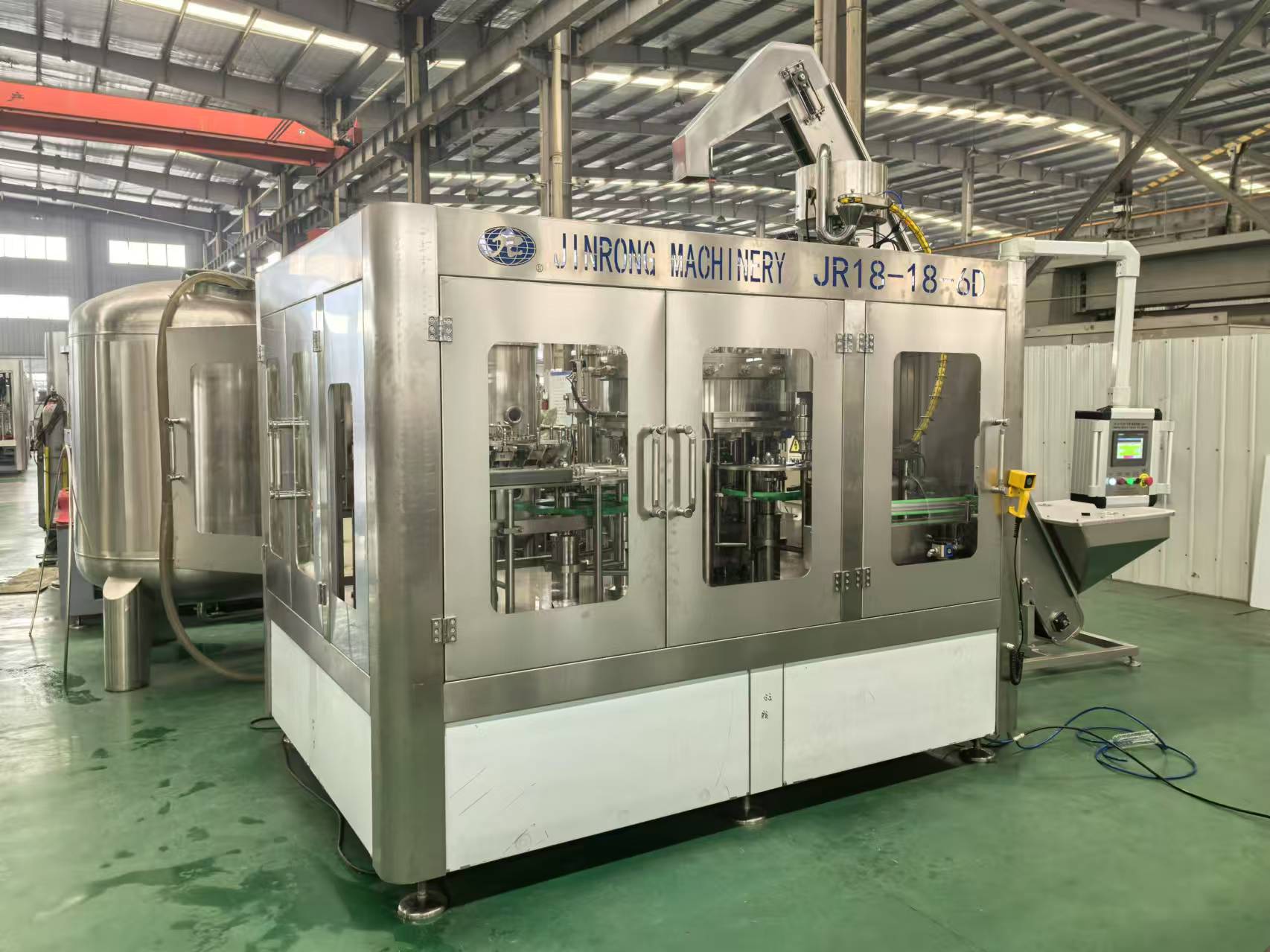金榮機械主導(dǎo)產(chǎn)品有沖瓶灌裝旋蓋三合一機組、灌裝旋蓋二合一機組、灌裝封口二合一機組、全自動吹瓶機、加侖桶裝系列機組、水處理生產(chǎn)線、自動就地清洗系統(tǒng)、各種殺菌成套設(shè)備、沖瓶灌裝封口生產(chǎn)線、果汁果茶飲料成套設(shè)備等